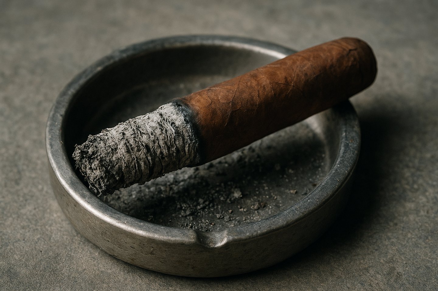 Coloca el puro en un cenicero: El tabaco está diseñado para consumirse solo y no necesita ser aplastado como un cigarrillo.