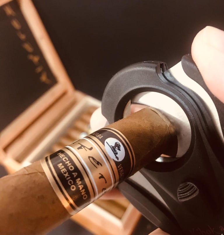 Corta la punta: Usa un cortador o unas tijeras afiladas para cortar la punta del puro, justo por encima de donde está la ceniza.