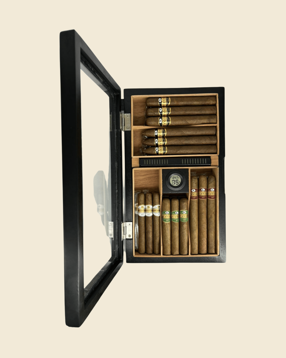 Humidor de cedro con tapa de vidrio