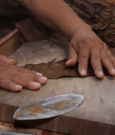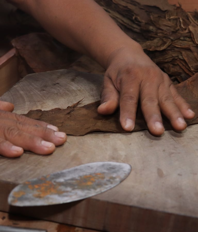 El Capote actúa como el "cuerpo" que mantiene unida la tripa. Es una hoja de tabaco robusta y elástica que se enrolla firmemente alrededor de las hojas de la tripa.