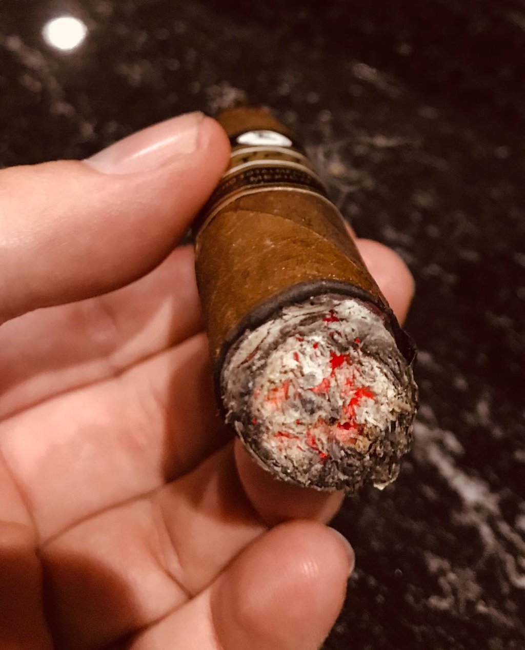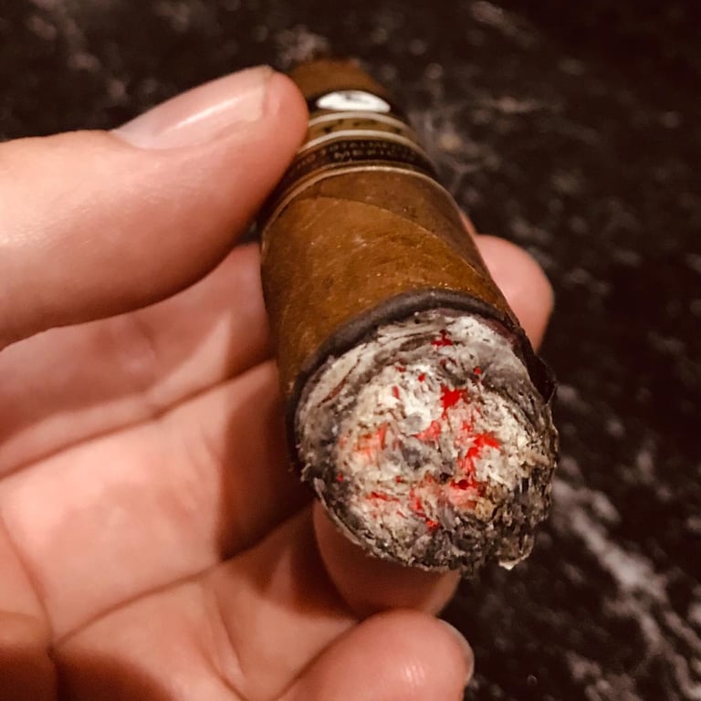 La prueba de la Tripa Larga: Un puro premium está hecho con hojas enteras que recorren todo el cuerpo del cigarro (tripa larga). Esto crea una estructura arquitectónica interna que sostiene la ceniza de forma sólida. Si la ceniza se desmorona en hojuelas con apenas moverla, es muy probable que estés fumando un puro de tripa corta (picadura) o que la construcción sea deficiente.