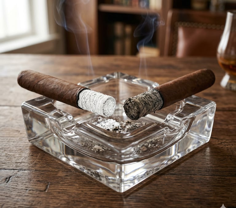 El mayor delator de un principiante es golpear el puro compulsivamente contra el borde del cenicero. Un buen tabaco exige respeto en cada etapa.