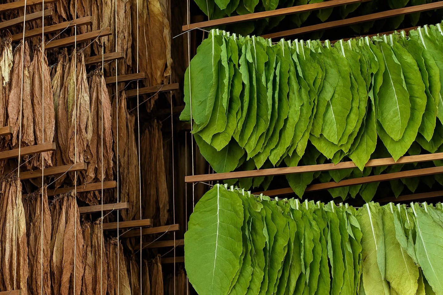Nuestros campos en Veracruz, tierra volcánica y generosa, son el inicio de todo. Ahí, el tabaco crece al ritmo del sol y se transforma con paciencia. El secado, el añejamiento y la mezcla son procesos casi sagrados para nosotros.