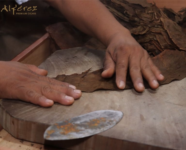 Cada hoja que usamos ha pasado por los ojos y manos de nuestro Máster Blender que guía nuestra producción. Con más de 25 años de experiencia en la selección, curado y mezcla de tabacos mexicanos, su conocimiento no se aprende en libros, se hereda y se siente. Es él quien selecciona las ligas, equilibra las notas y da vida a cada vitola. Su trabajo es silencioso, pero su firma está en cada calada.