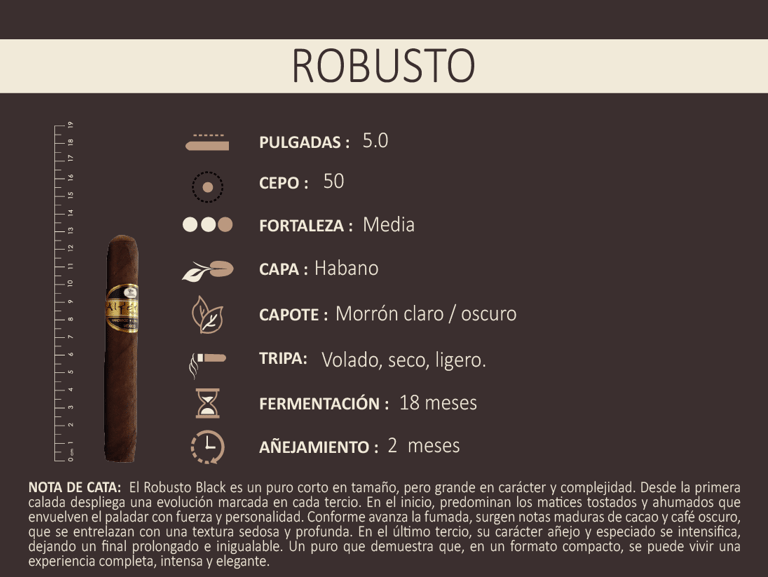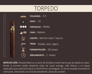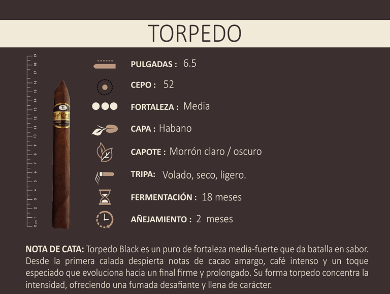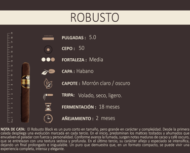 Para cuando el reloj deja de importar. La Liga Black de Puros Alférez es un deleite reservado para los momentos especiales: una sobremesa prolongada, una copa de buen destilado, y la mejor compañía. Su carácter se revela lentamente, como las mejores conversaciones bajo la luz tenue de la noche. Con una mezcla de Capa habano 2000, Capote Negro San Andrés y Tripa fermentada por más de 24 meses, esta liga ofrece una fumada profunda, sedosa y con matices dulces, tostados y especiados que maridan a la perfección con un ron añejo, un fino whisky o un coñac redondo